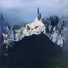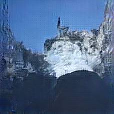 Below are 40 iterations of showing how the neural model learned to represent this class. The visualizations below show the maximally activated representations of what makes Neuschwanstein look like Neuschwanstein