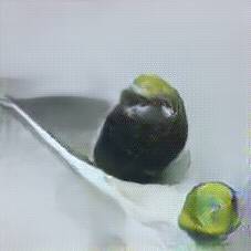 Below are 40 iterations of showing how the neural model learned to represent this class. The visualizations below show the maximally activated representations of what makes Olives look like Olives
