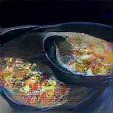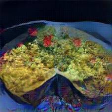 Below are 40 iterations of showing how the neural model learned to represent this class. The visualizations below show the maximally activated representations of what makes Paella look like Paella