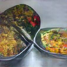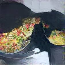 Below are 40 iterations of showing how the neural model learned to represent this class. The visualizations below show the maximally activated representations of what makes Paella look like Paella