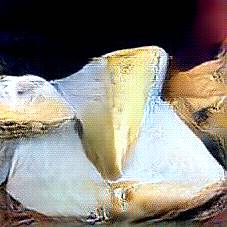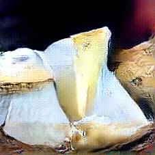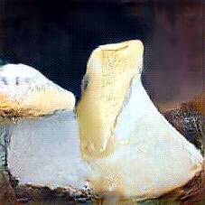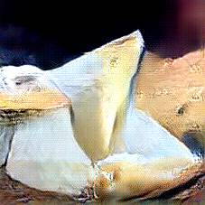 Below are 40 iterations of showing how the neural model learned to represent this class. The visualizations below show the maximally activated representations of what makes Parmesan look like Parmesan