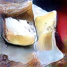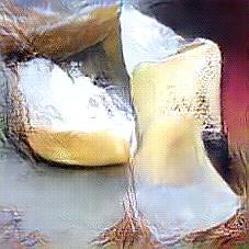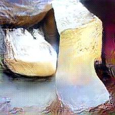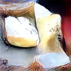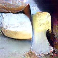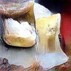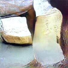 Below are 40 iterations of showing how the neural model learned to represent this class. The visualizations below show the maximally activated representations of what makes Parmesan look like Parmesan