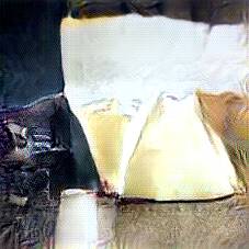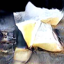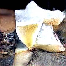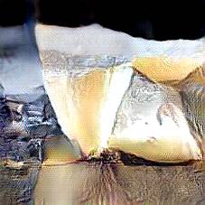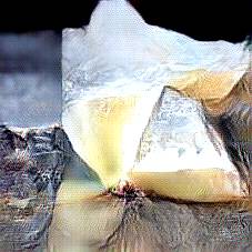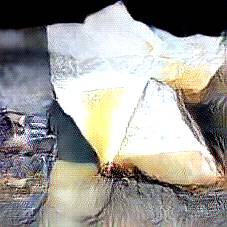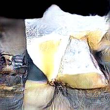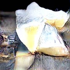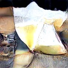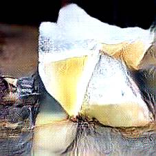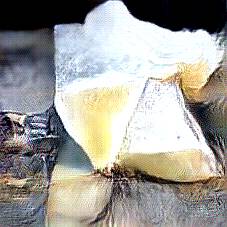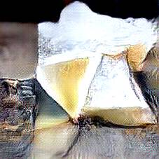 Below are 40 iterations of showing how the neural model learned to represent this class. The visualizations below show the maximally activated representations of what makes Parmesan look like Parmesan